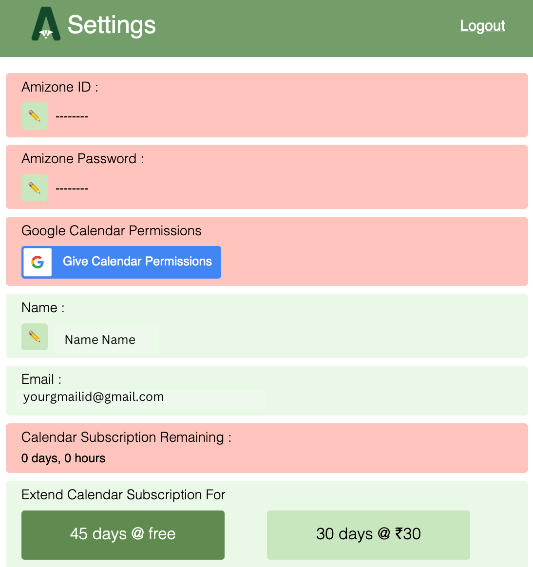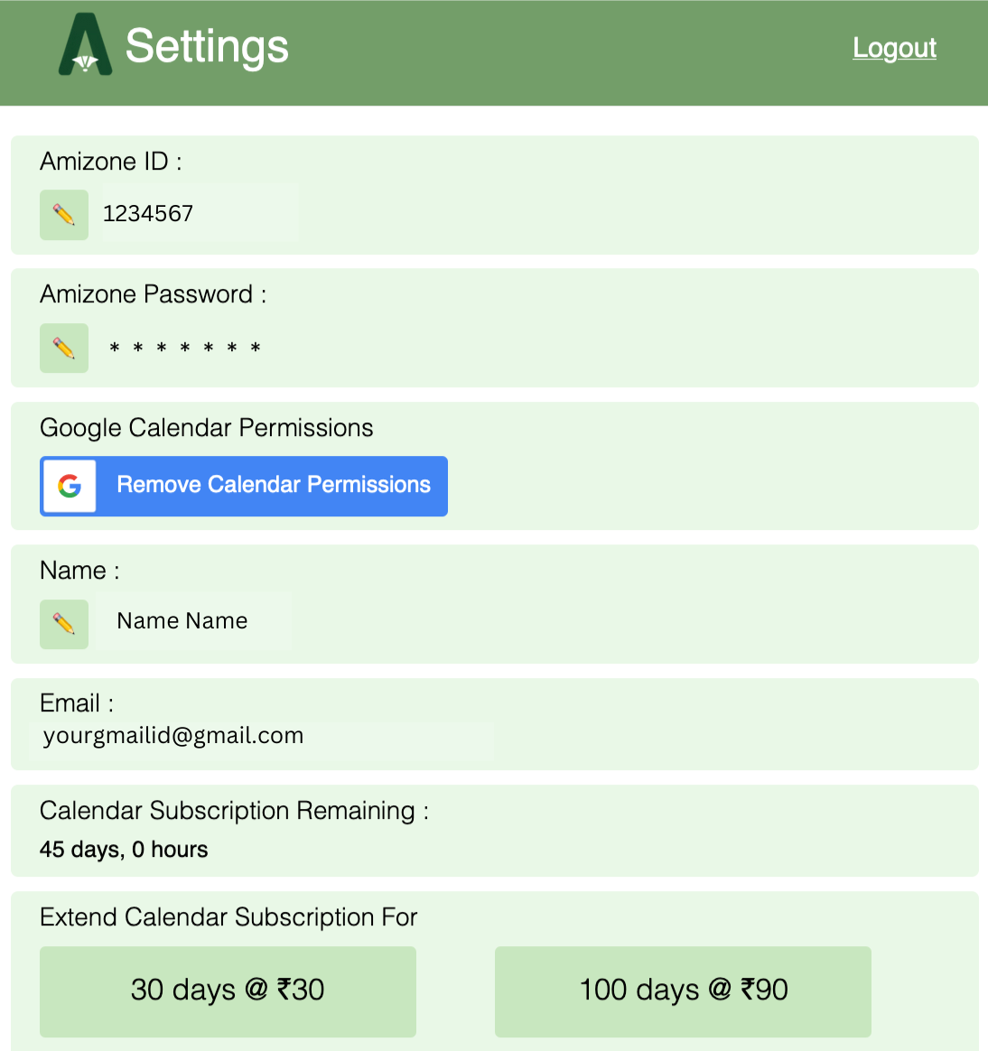 Now similarly update your Amizone Password, click on the pencil button