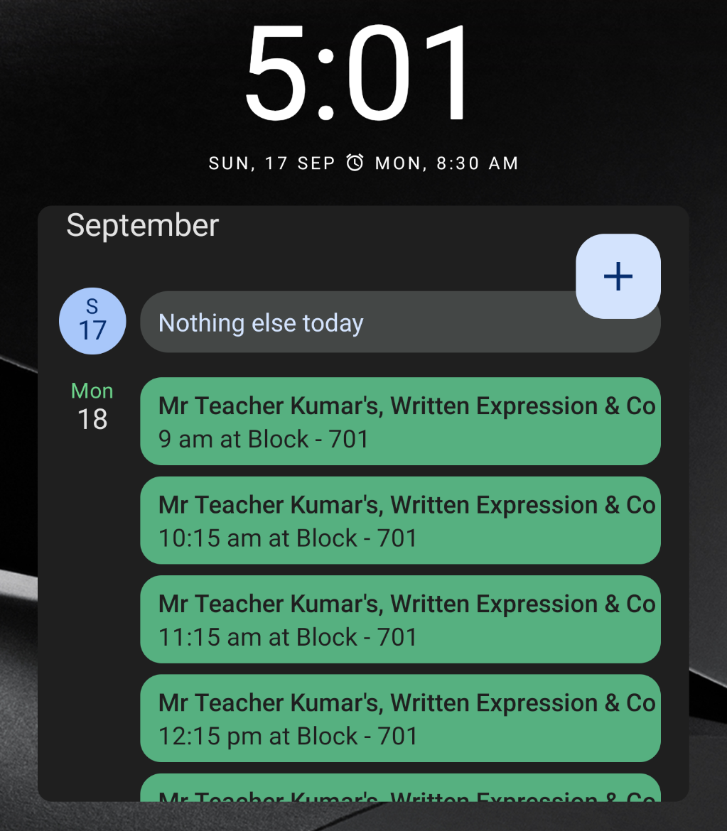 Now your classes of today and tomorrow will soon be pushed to google calendar